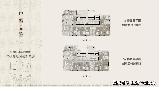1栋630㎡:35层高,一层一户,3梯1户配置,配备9×18米超大全落地窗客餐厅,27.7㎡全赠送共享平台。
