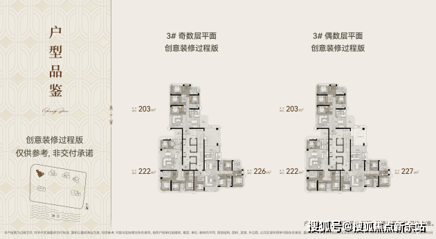 3栋203-227㎡:50层高,4梯3户设计,5.1-8米宽厅布局,23㎡全赠送共享平台,部分户型实现南北双阳台对流。
