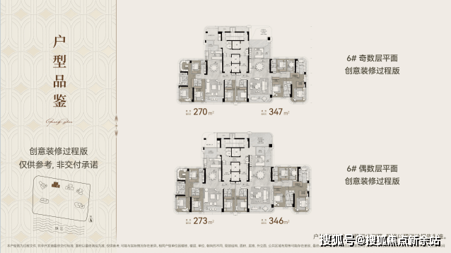6/8栋270-347㎡:49层高,3梯2户配置,5.7-7.9米宽厅设计,奇数层配备32㎡6.6米通高平台空间。