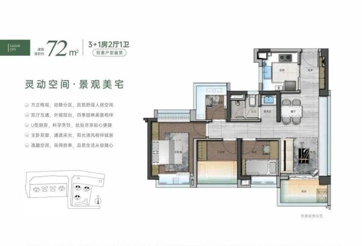 云城上品,建筑面积约72-105㎡创意3+1,110-143㎡阔境臻品,主城高性价比置业首选‼