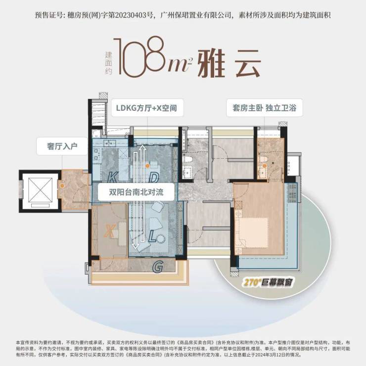 【户型2-建面约108㎡】归家礼序 | 奢厅入户,脏净分离,勾勒生活秩序温情互动 | LDKG+X一体化设计,解锁家人互动新模式百变生活 | 双阳台,咫尺诗意享受,转身惬意生活全景视界 | 270°巨幕飘窗,拥揽盛世繁华