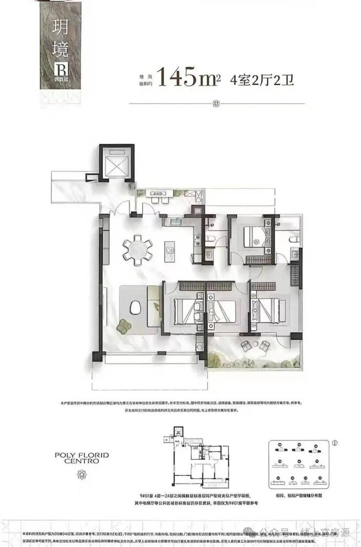 145平拥有独立的电梯,相当于是一梯一户,品质提升。145平也是四开间朝南,且是四代宅,南北都有露台赠送,奇偶层露台位置不同。另外主卧为两面采光,预计朝东会设计成落地窗。