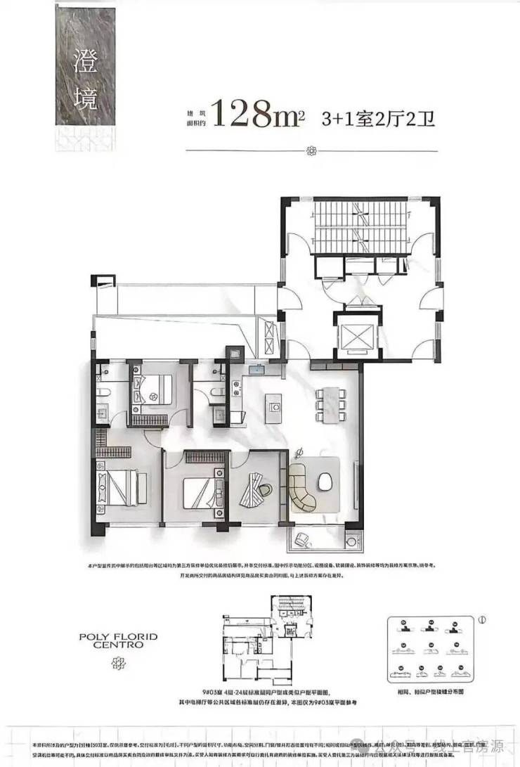 中间套128平做到了四开间朝南设计。电梯与隔壁的128平共用,且是两边对开门,这样一来,电梯厅就做到了私享,品质提升。