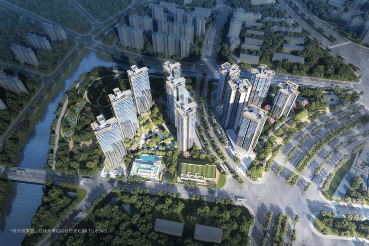该项目打造一环一轴的规划结构:一环为滨河绿环——营造荔湾休闲都市的温情生活底色;一轴为配套之轴——打造友爱型的邻里社区标杆。