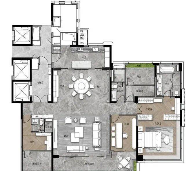 我们再来看看此次加推的268平的大面积户型,作为项目的旗舰,暗藏着哪些巧妙的设计?