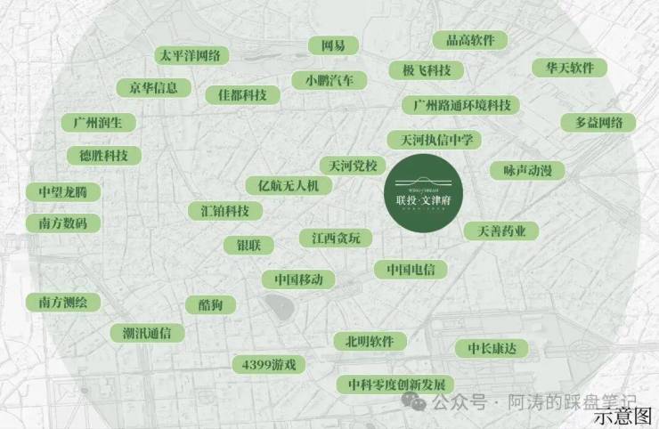 项目周边汇聚天河区党校、执信中学(天河校区)、网易、太平洋网络、中国移动、中国电信、小鹏等2500多家高新企业,与高知高净值圈层为邻,仅500多户圈层纯粹,谈笑有鸿儒,往来无白丁。