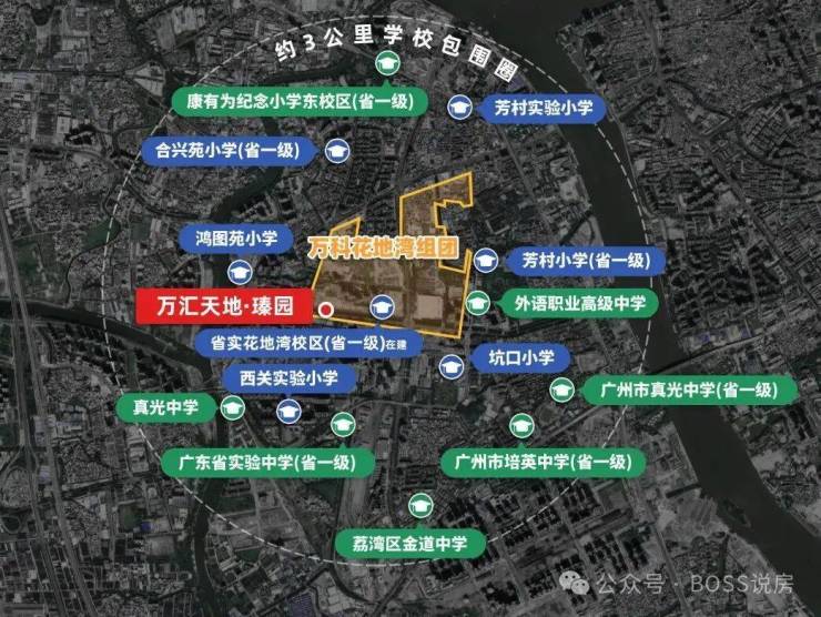 万科理想花地·臻园是万科广信资产包的一部分,总占地1平方公里,连片开发比广钢新城还要大,片区中包含了6所幼儿园,和5所中小学,规模之大。