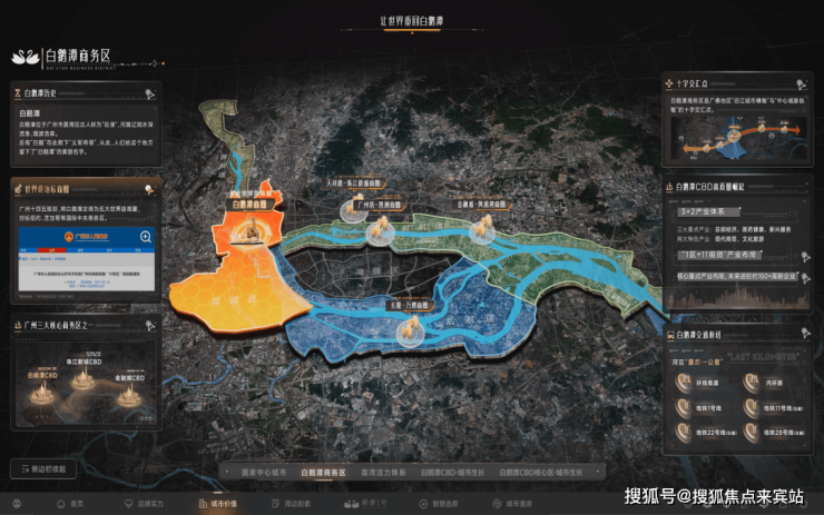 以白鹅潭为核心,路网与地铁环线高效贯通,构建大湾区1小时生活圈,打通资源流动的“最后一公里”。