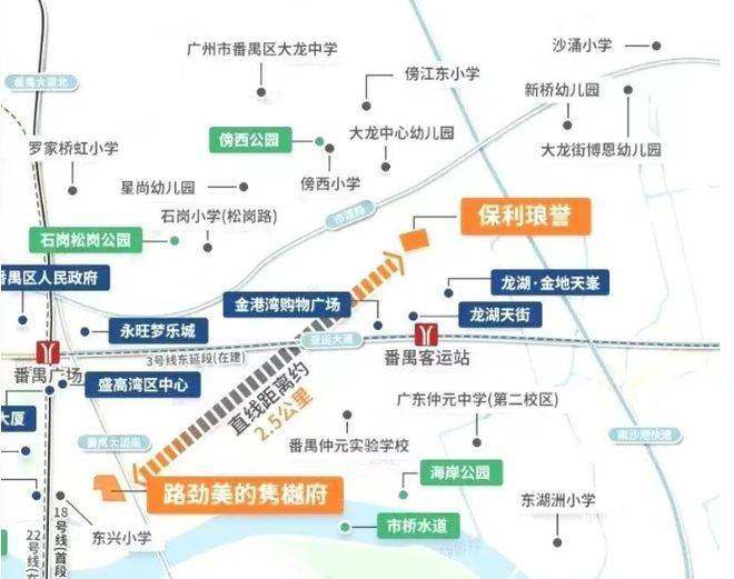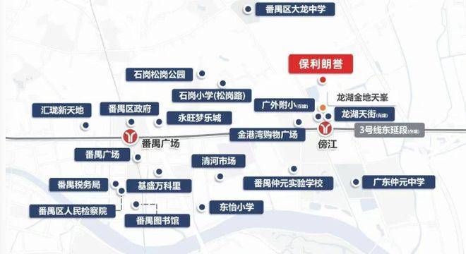 先聊聊项目的区位和背景。保利琅誉位于番禺广场板块,具体在番禺客运站北侧,与龙湖金地天峯相邻。这个位置属于泛区府板块,周边配套已经比较成熟。项目由央企保利发展开发,物业公司为保利物业,国家一级资质物业,物业管理费3.9元/㎡/月。