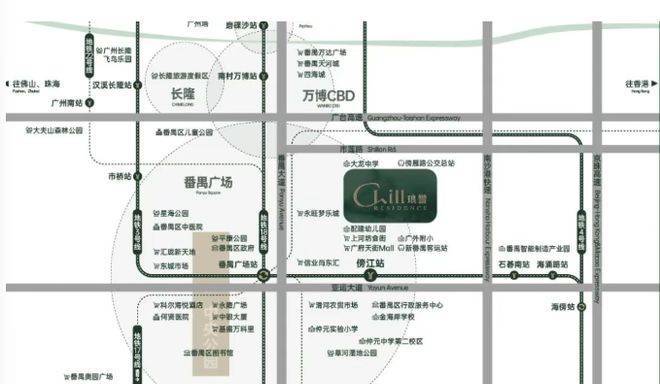 再来说说大家最关心的交通。项目距离地铁3号线东延段傍江站约500米,步行可达。从傍江站出发,1站到番禺广场站。番禺广场站是五轨交汇的枢纽,目前有地铁3号线、18号线、22号线、3号线东延段,规划中还有17号线。从这里出发,一站畅行琶洲,两站通勤珠江新城,全程无需换乘。这个通勤便利度,在番禺的新盘中确实非常突出。