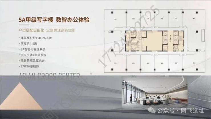 硬件设施上,写字楼配置双大堂(约 12 米挑高)与智能识别道闸,提升商务入口仪式感;电梯采用国际品牌锋速电梯,最高速度达 4m/s,搭配双层侯梯厅设计,减少候梯时间;空调与新风系统为 “中央空调 + 智能感应调节” 模式,保障室内空气品质与温度舒适度。智能系统方面,全面覆盖 5A 体系 —— 办公智能化系统、通讯自动化系统、消防自动化系统、安保自动化系统、楼宇自动控制系统,实现办公流程数字化与管理高效化。