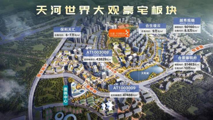 板块内的优质自然资源吸引多家开发商进驻打造低密住宅,如合生缦云,合景臻颐府,这2个都是单价破10万/㎡的豪宅项目,周边的华润天合、龙湖天宸原著、合生帝景等项目,单价也是8万/平以上。