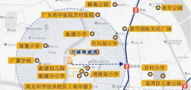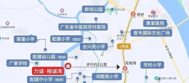力诚榕诚湾属于茶滘旧改项目,位于荔湾花地河以西,广州香料厂以南地段,北侧有一座高架桥,东邻汾水花园和真光中学,西侧为芳村的花地河。