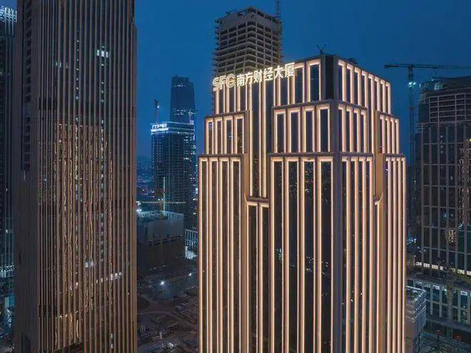 本项目设计引入“古典型制”的理念,以形体对称为原则,以竖向石材线条为语言,以塔楼层层收分为手法,诠释金融城整体风貌特色。