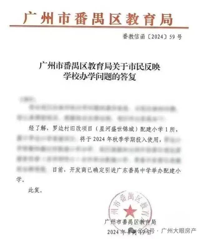 其中包括一所拥有36个教学班的复建小学,现在已经确定引进“广东番禺中学教育集团”,现在命名为:广东番禺中学教育集团培兰小学