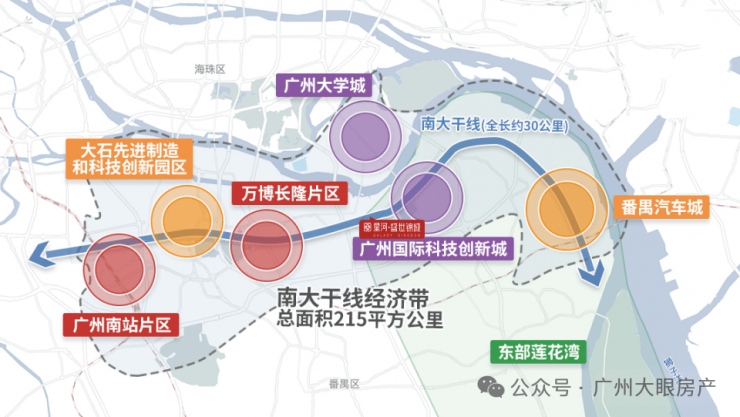 地处南大干线经济带上的番禺黄金财智走廊,不仅是连接珠三角东西岸的重要发展走廊,更串联了番禺多个关键经济台,如广州南站、长隆万博、国际创新城以及汽车城板块。
