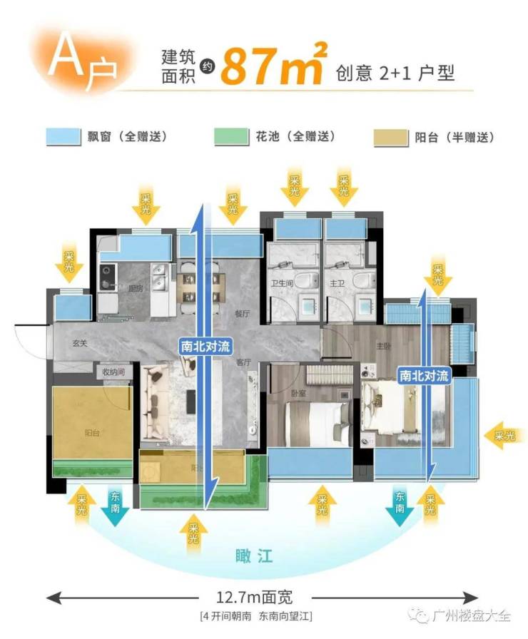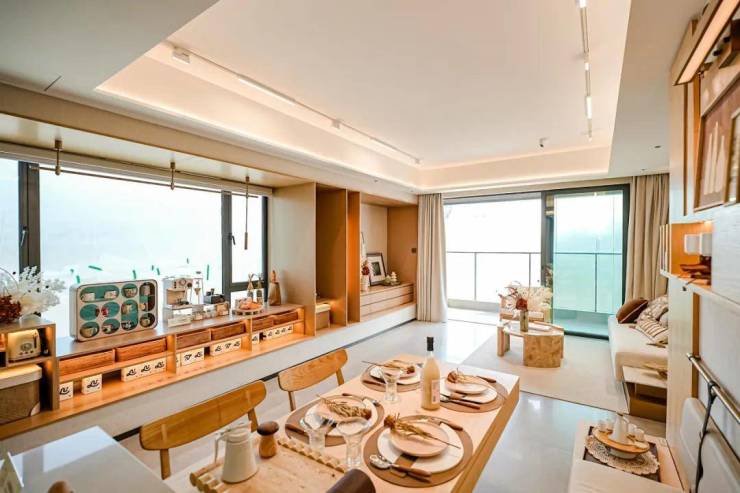 约112㎡户型相当于市面约150㎡户型,最大的亮点就是有接近5.2米的大方厅,三阳台高拓空间,让户型空间和生活方式更加百变,根据家庭不同阶段需求,打造“会生长”的房子。