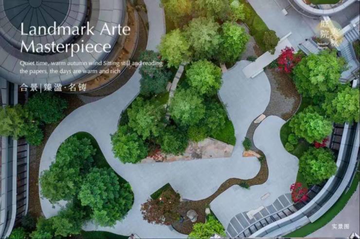 中庭约4000㎡臻艺生活空间,让业主全方位安放身心。下沉式禅意庭院,臻稀植株黑松、红枫和石雕塑等园林元素,塑造精神引领的美学生活方式。