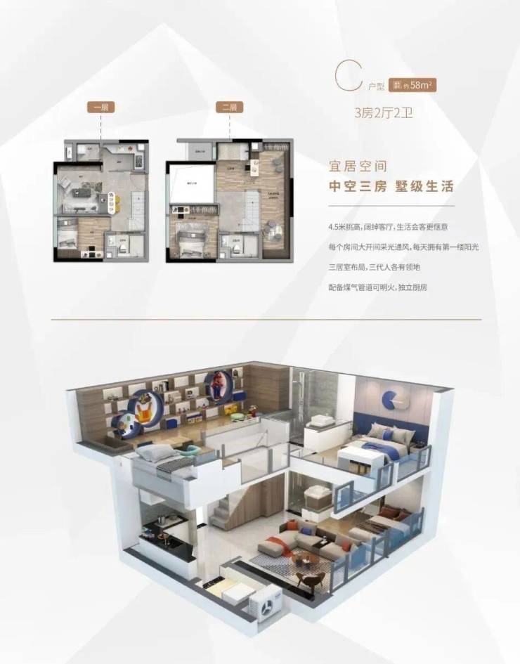 值得一提的是,A户型是双钥匙设计,方便后期出租管理。C户型更是设计了厨房,接通燃气管道可明火。