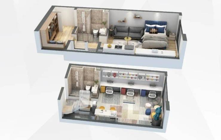 4.5米层高的LOFT,中空墅级客厅设计,满足一层创业,一层居住。