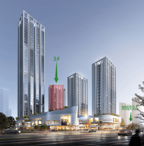 3#因为靠里,我们从效果图上能看出,3#毗邻写字楼,并且远离商业楼和马路,可能会更安静。