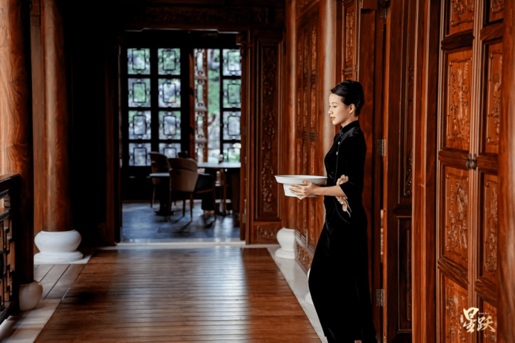 整座园林食府依循皇家官制对仗形式规划,采用围合式古典建筑设计,由苏州香山帮古建团队的老师傅匠心打造。经典的飞檐斗拱完美再现,门窗、梁枋、栏杆等处均饰有精美的满工雕花,琴棋书画、礼义孝贤等主题贯穿其中,具备极高艺术观赏性。