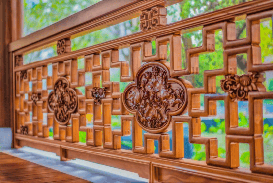 4)满工雕花·精湛工艺 精挑细选的陶瓦屋顶、进口柚木木作及地板、汉白玉石材等顶级材料聘请苏州非遗工匠打造艺术品级的满工雕花