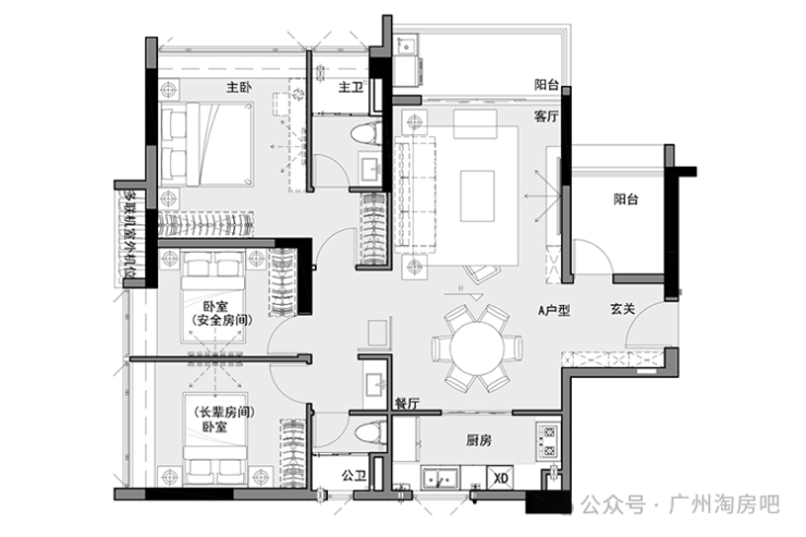 “舒适尺度” 客餐厅4米开间,主卧带衣帽间,U型厨房,公卫干湿分离,格局方正实用,动静分区