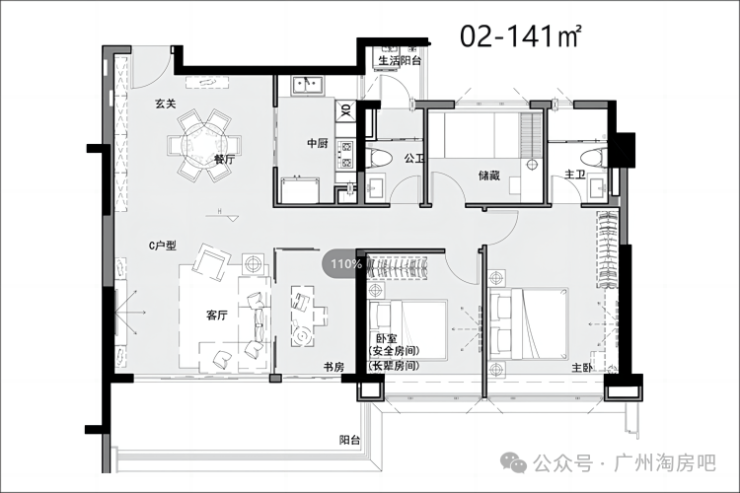 “舒适尺度” 6-7米双联阳台,格局方正实用,动静分区,其中02户型带双阳台,05户型主卧270°飘窗