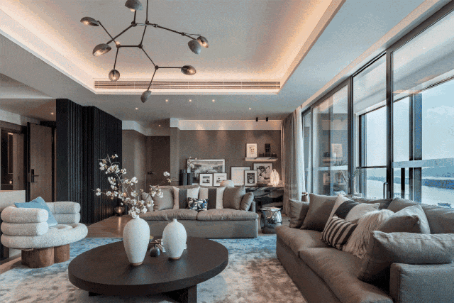 正在热销的B2栋322-402㎡的首排江景大师定制大平层,便呈现低调奢华的东京都市氛围,简约线条、中性色调、奢华材质自然融合,描绘了一首江上艺术之诗。