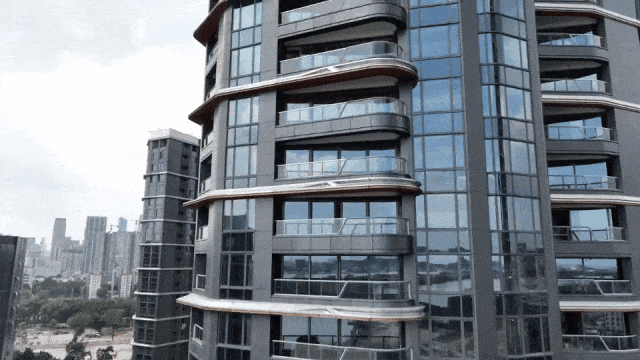 玻璃幕墙也升级为玻璃幕墙系统门窗,窗墙比高达90%,最大阳台超过了9米!