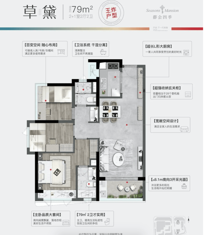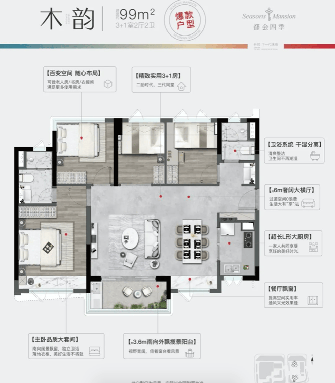 都会四季,将推建面约65-99㎡2至3+1房,相同面积,比别人多出一间房。