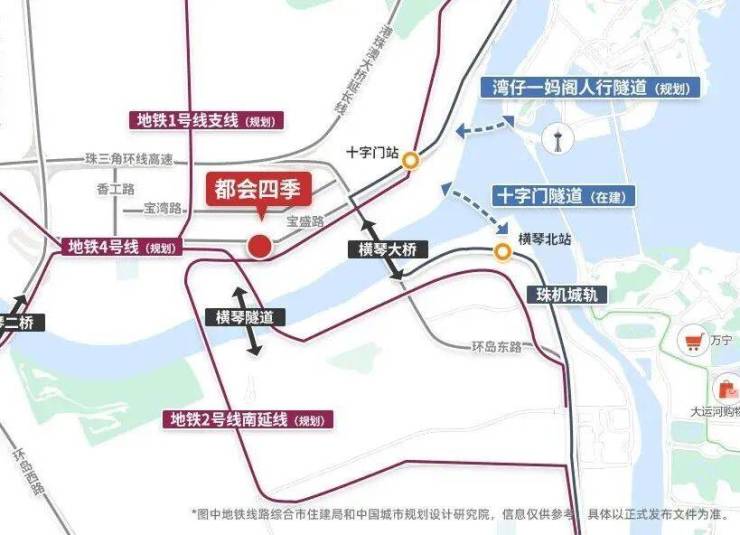 万科横琴【都会四季】项目地处珠海横琴新中心,政府规划的横琴中心超级总部基地;是区域内首个70年产权的高端住宅项目,3地铁线上盖,距离珠海地标新经济总部大厦约500米,距离港珠澳大桥落桥点1.5公里,距离金融岛(澳门证券交易所)3公里,横琴口岸5公里;楼盘占地8.13万平方米,一共有13栋高层住宅+4.5万方印象城购物中心+配建有首都师范大学附属幼儿园。