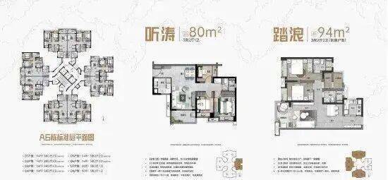 在售面积:81-135㎡平层三至四房
