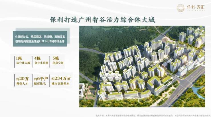 保利天汇项目位处天河智谷中心,整体占地面积超30万㎡,计容建筑面积约79万㎡。