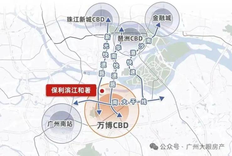 项目位于大石板块,临近万博CBD,距离珠江仅100米,这个盘就是2023年9月山西金振德以2.3万/一平楼面价拿下的地块,后来保利加入,开发商对外宣传打造最近万博的唯一270度环幕江景盘!