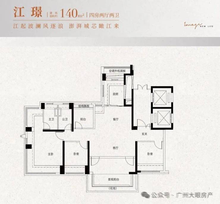 建面约140㎡:大四房两厅两卫,北向一线望江,稀缺板楼设计,专梯专户,尊享高贵
