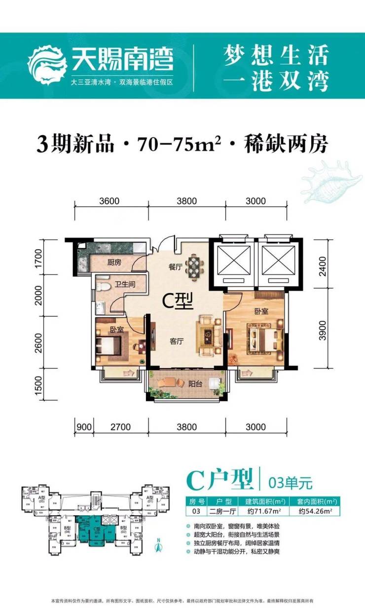 三期主力户型:约70-75㎡(两房)