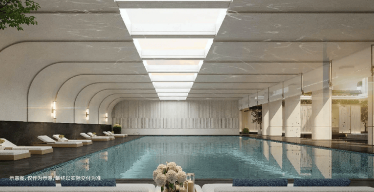 花园内部的信息也有透露,游泳池分了室内和室外,豪宅社区的高级感扑面而来。
