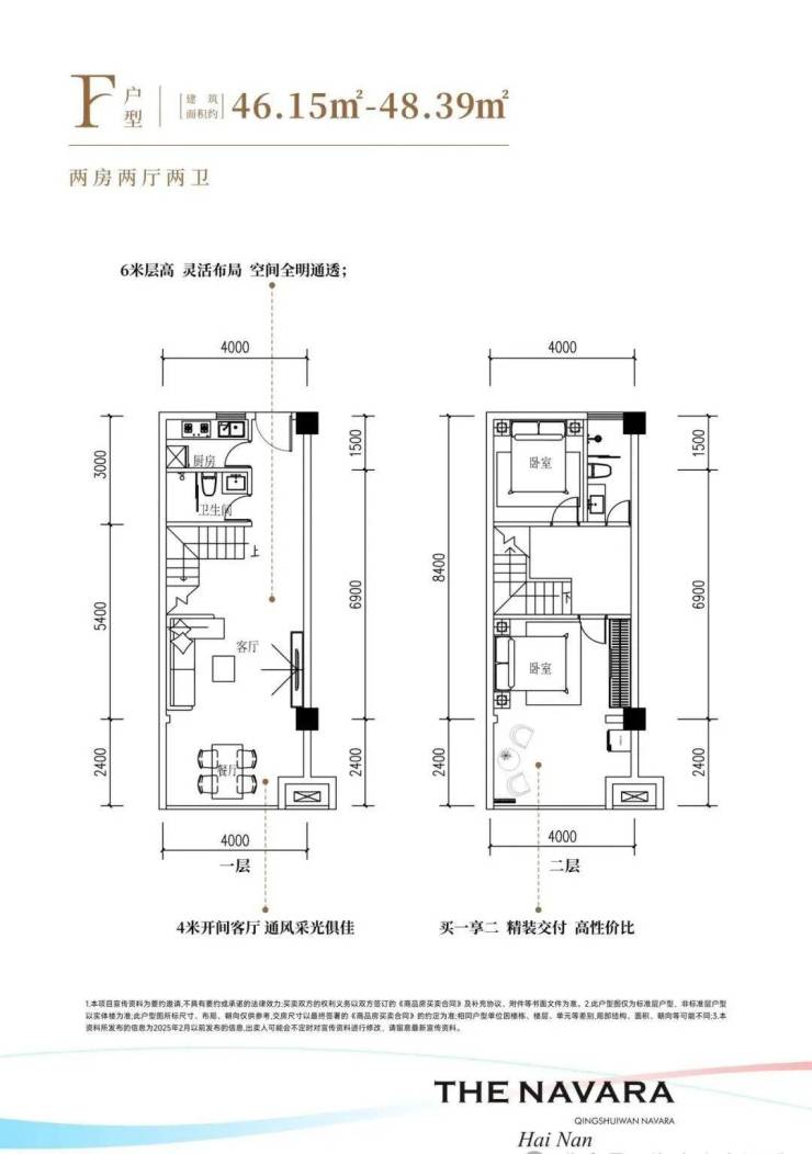清水湾·纳瓦拉深刻洞察现代居住需求,用心定制层高3.4m、建筑面积约47-125㎡一至三房瞰景平层,层高6m、建筑面积约47-125㎡二至四房优雅复式。