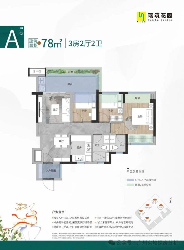 94㎡4房2厅2卫,高拓展入户花园,四开间朝南南北对流,主卧套房设计,270°瞰景飘窗。