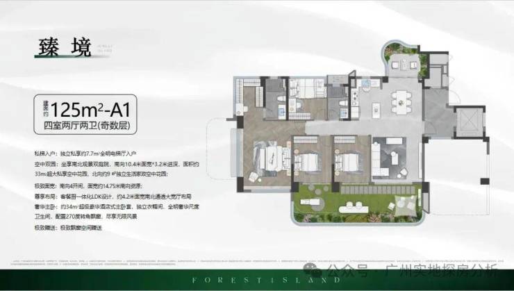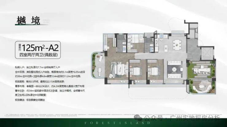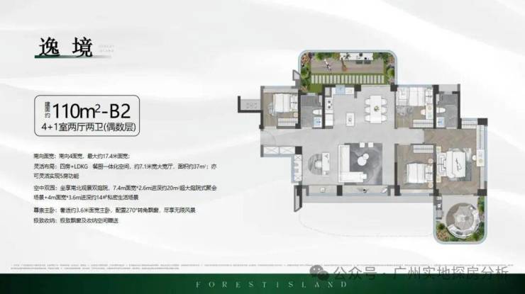 2、产品创新:作为广州首个第四代住宅项目,采用25%阳台占比和40%户属空中花园设计,实用率高达140%以上,部分户型赠送面积不计入产权,实际使用空间大幅增加,如110㎡户型实际使用面积可达153㎡。