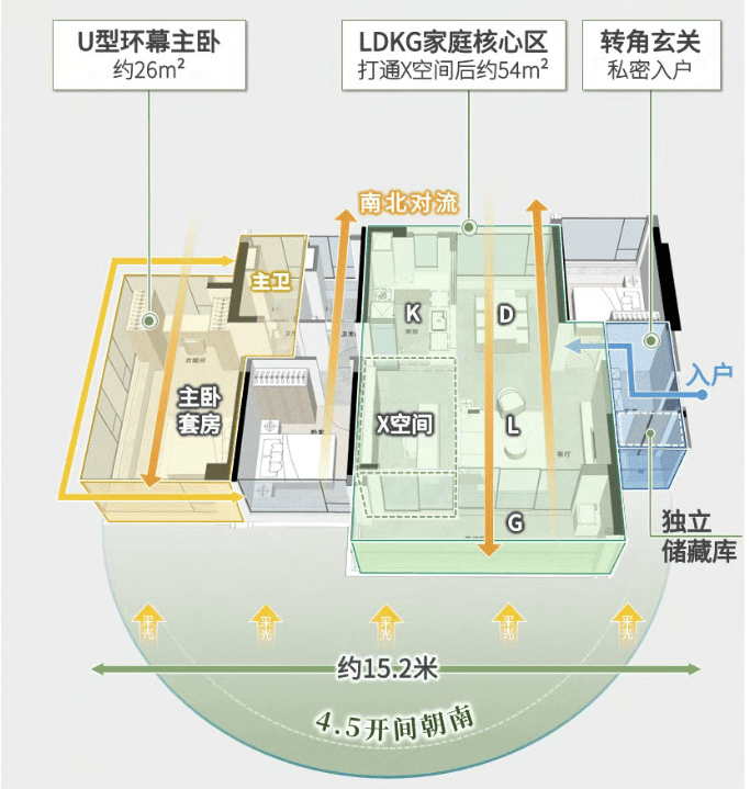 搭配约6.1米的观景阳台,与北向形成完美的南北对流,可扩展的LDKB无界方厅。