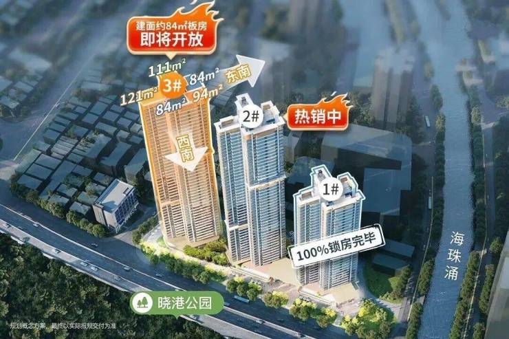 西南向是城市绿肺晓港公园,东面高层户型还能眺望珠江和广州塔。