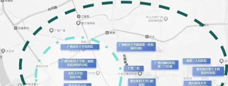 步行约850m可达珠江医院(全国首批三甲)、约250m广医二院(西院区)、南石头社区服务中心;周边约3km内广州红十字会医院、妇幼保健院(二甲)、省口腔医院(三甲)、中山孙逸仙医院南院、广中医骨伤科医院等医疗体系,24H为健康护航。