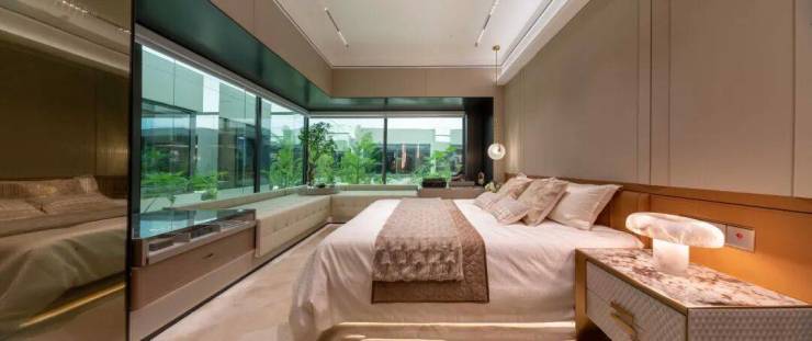 主卧坐拥采光面长达7.7米的270°转角大飘窗,加上后面两个飘窗,整个主卧采光面长达约14米!