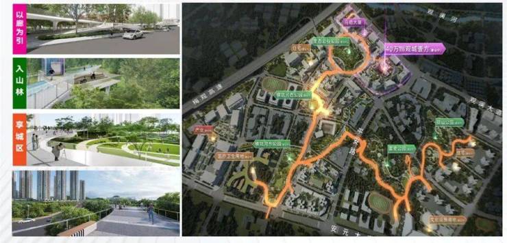 独创规划超3.6km空中连廊,串联5大公园,商业,住区、办公、文化休闲、生态康养等多个特色主题环游路线,超23公顷的生态公园,奢享密度比肩香蜜湖。