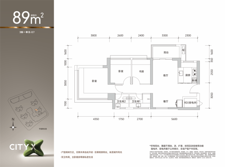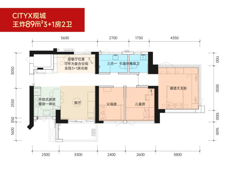 王炸户型 约89㎡3+1房两厅两卫(双娃家庭置业首选)