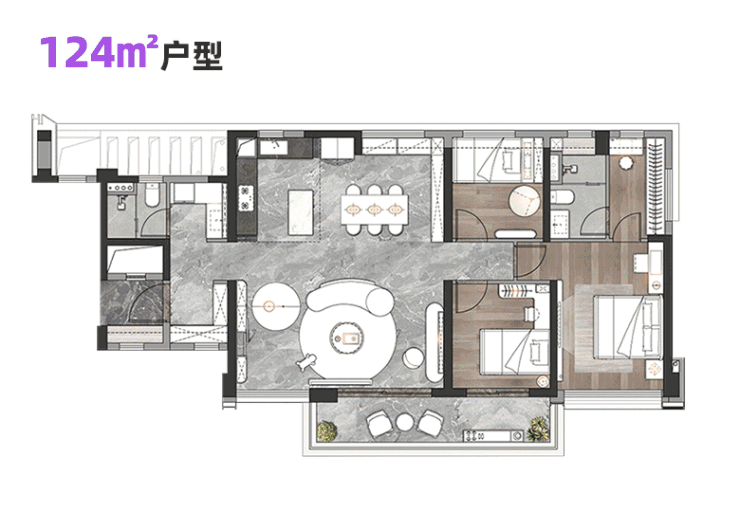 建面124平四房,分为A、B两个户型,户型上基本上一致,都做到了四开间朝南设计,采光非常好。
