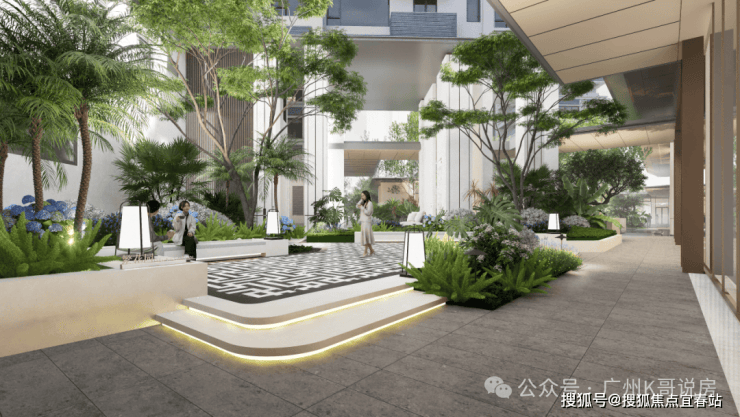 大门处保留百年榕树,打造休闲空间“榕悦广场”,休闲社交超自在!